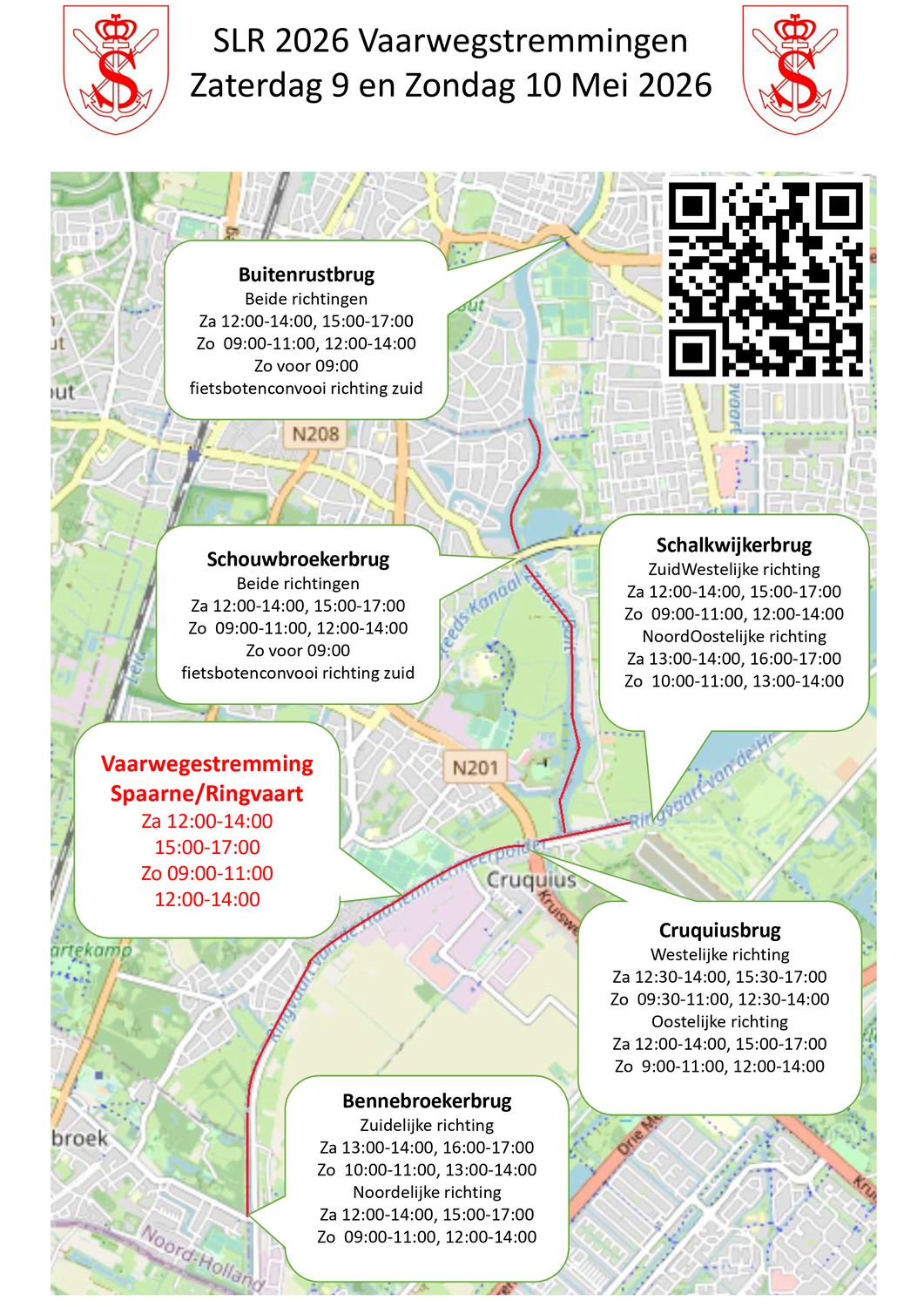 Deze informatie is bedoeld voor iedereen die niet mee doet aan de wedstrijd, maar wel op 9 en 10 mei 2026 over het Zuiderbuitenspaarne en de ringvaart wil varen. Dat kan op die dagen tijdens vier tijdvakken niet. Hieronder leest u waarom en wanneer dat niet kan.